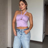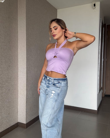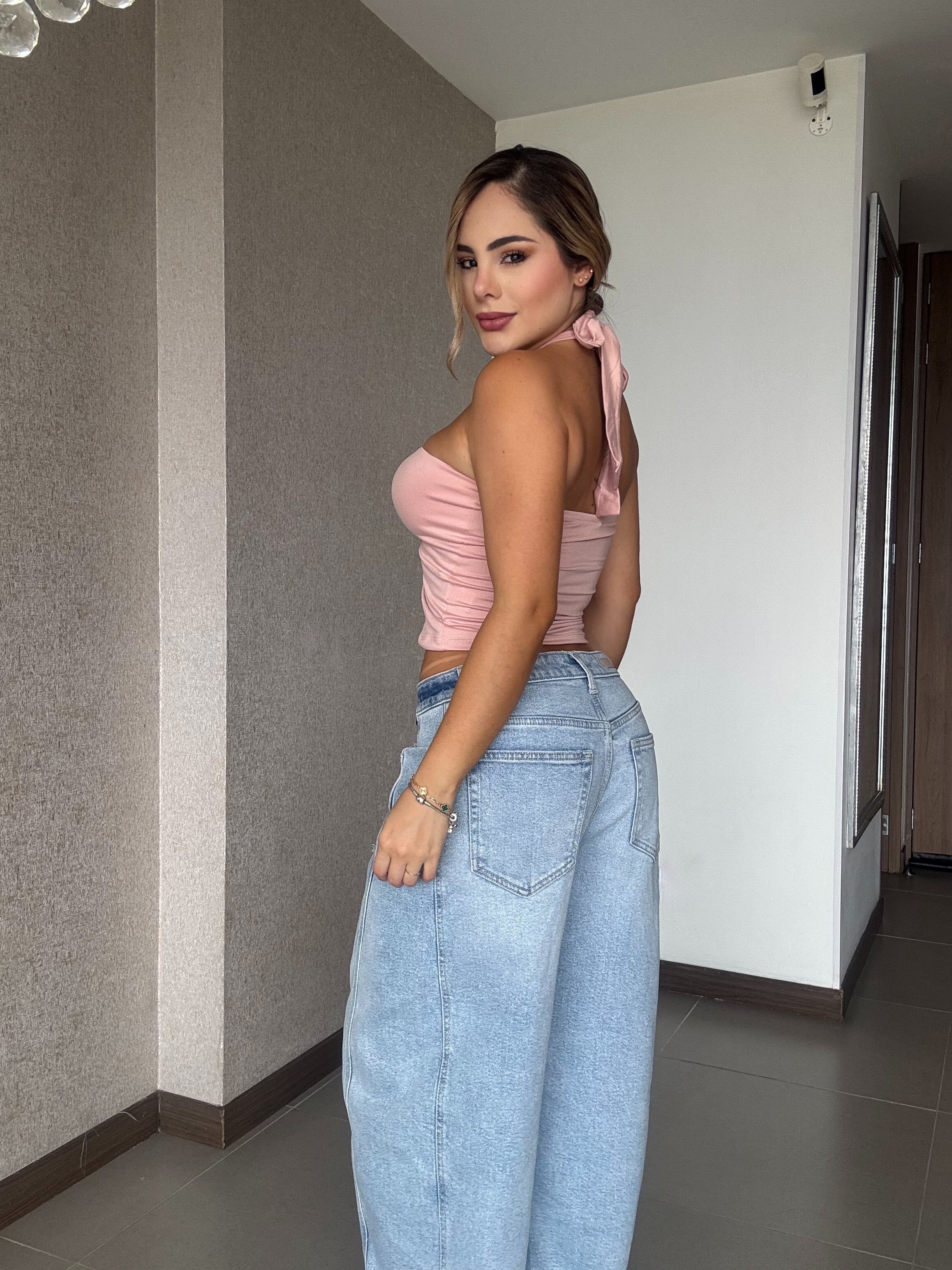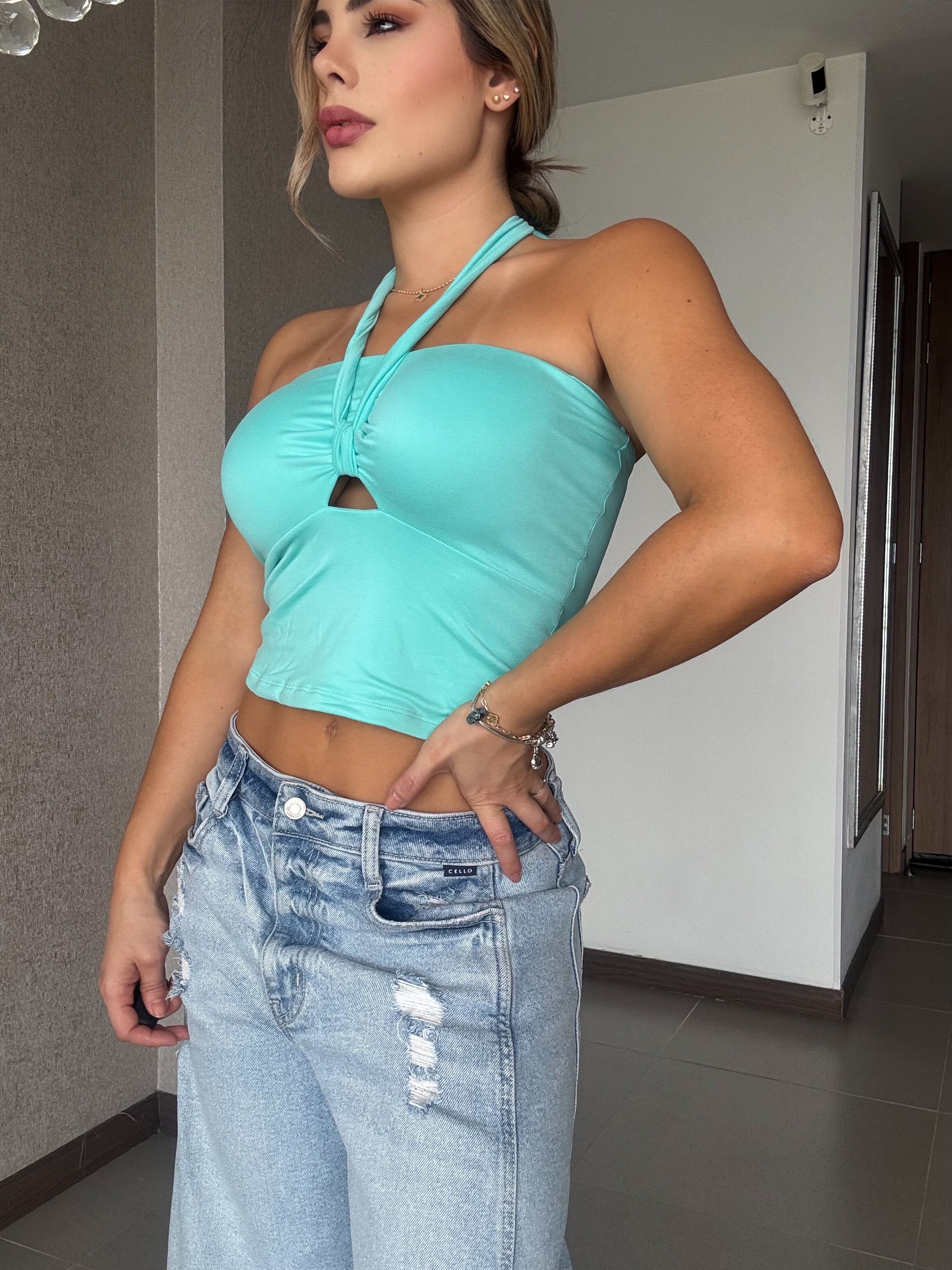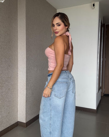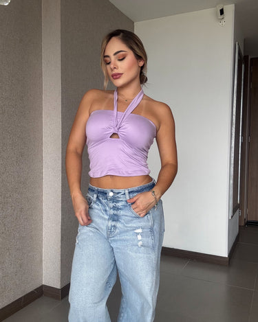 Blusa Con Drapeado En Copa, Escote Strapless Y Cargadera De Cuello