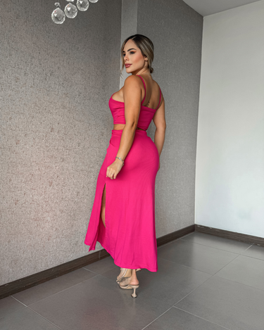 Vestido Largo Ajustado Con Nudo Dapreado En Frente